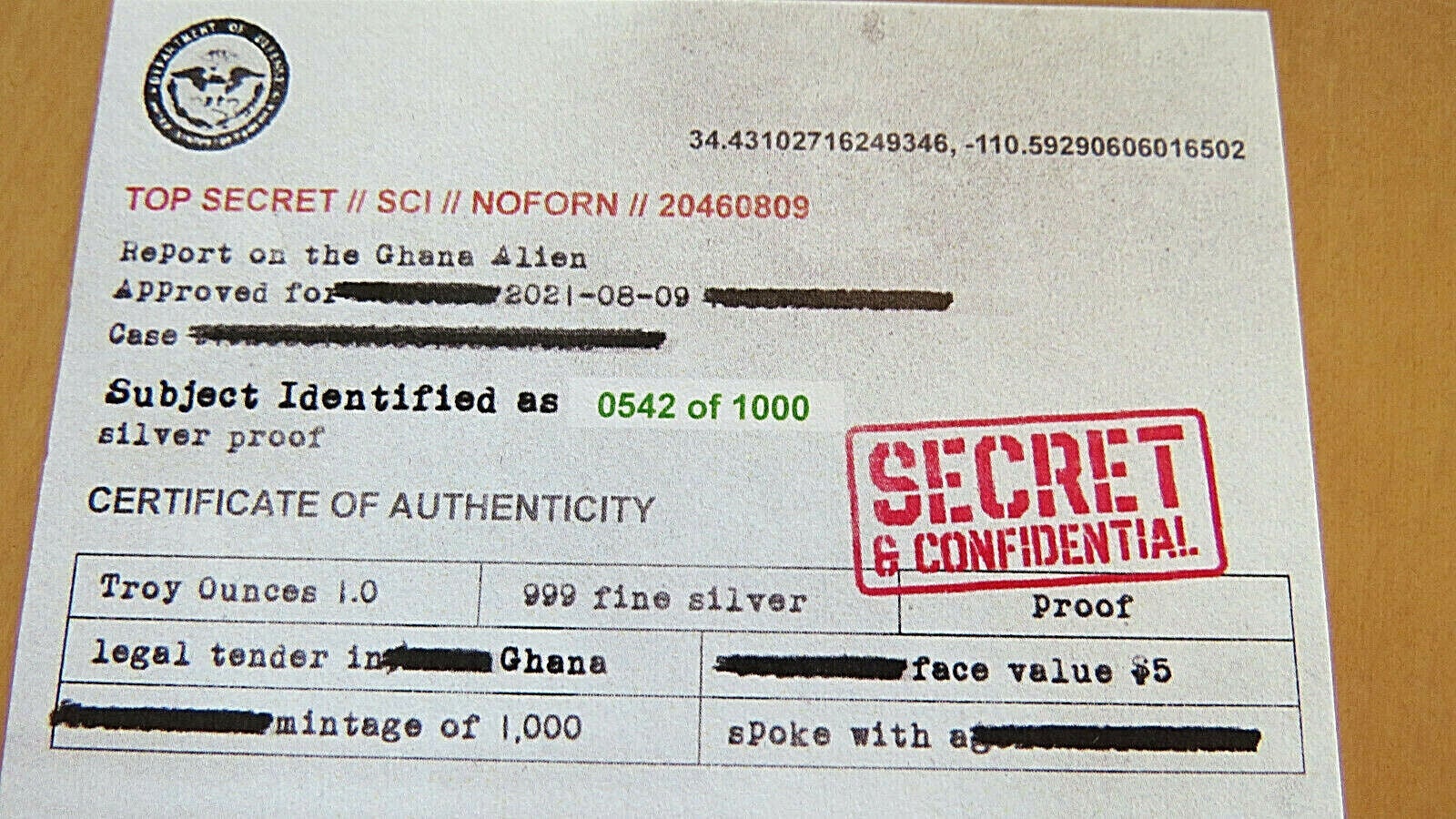 Silver Alien Glow in the Dark 1oz Silbermünze Ghana 2021