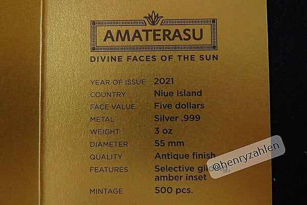 "AMATERASU Divine faces of t. sun" 3 oz Silbermünze Niue 2021