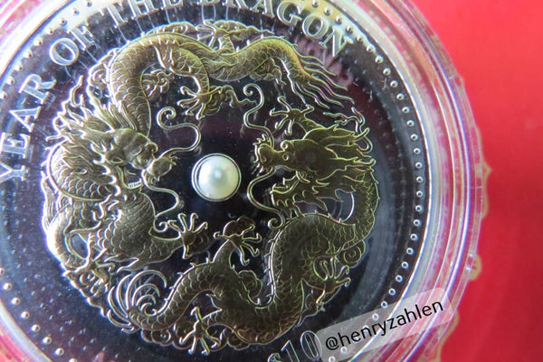 Diese schöne Münze zeigt den Drachen - als "Erdzeichen" für das Jahr 2012. Sie ist mit einer echten Perle versehen und wird in einem stilvollen Etui präsentiert. Der Drache symbolisiert die Macht des chinesischen Kaisers und steht gleichzeitig für Glück.