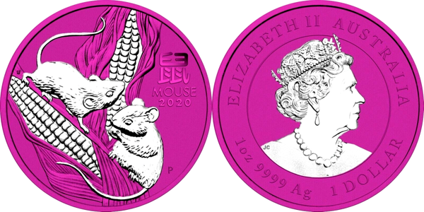 2 x 2020 Perth Mint Lunar III Jahr der Maus Space Green and Space pink