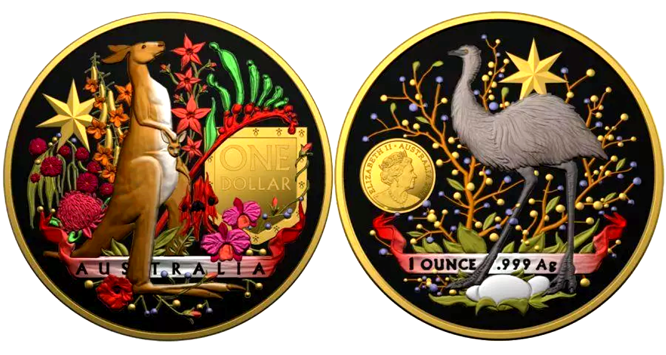 Each coin features a detailed depiction of the Australian Coat of Arms, representing the nation's pride and heritage. Crafted from .999 fine silver, the coins ensure high quality and lasting value. Officially issued by Australia, they carry a face value of 1 ARD per coin and are both a sought-after collector's item and legal tender. This 2021 special edition celebrates Australian identity and is suitable for both collectors and enthusiasts.