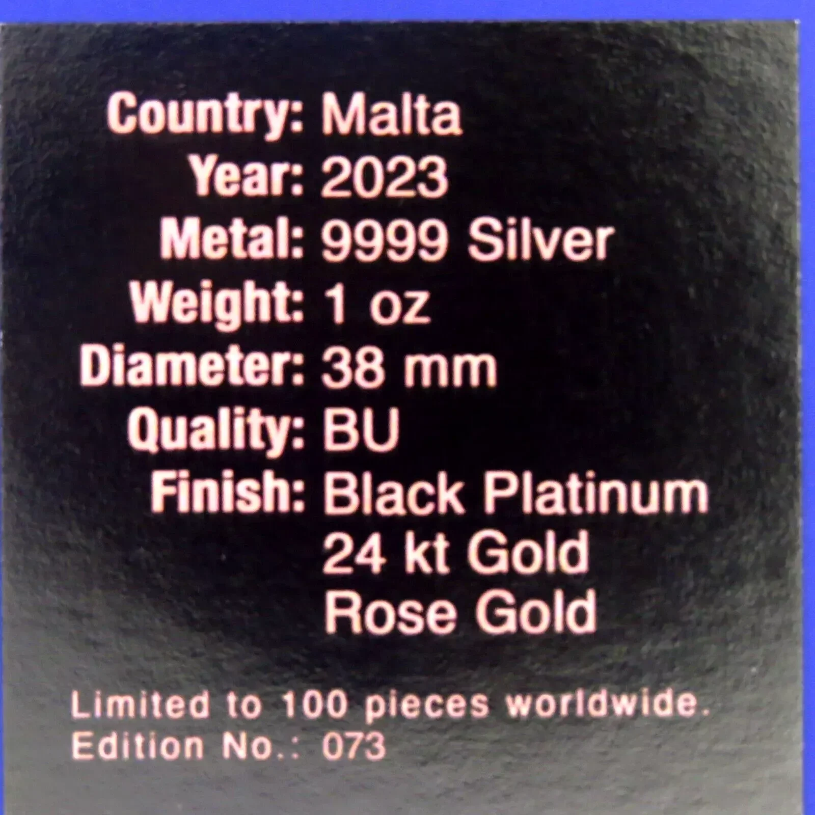 Malta 2023 Silvercoin 1oz Rosé Gold veredelt Mintage 100 Ex.